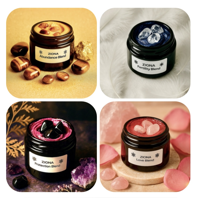 Preto som vytvorila ZIONA Blends – posvätné spojenie bylín, olejov, kryštálov a magickej energie pyramídy, pod ktorou sú tieto blendy harmonizované po dobu jedného lunárneho cyklu. Blendy predstavujú ten najsilnejší nástroj na podporu manifestácie cieľov a snov.