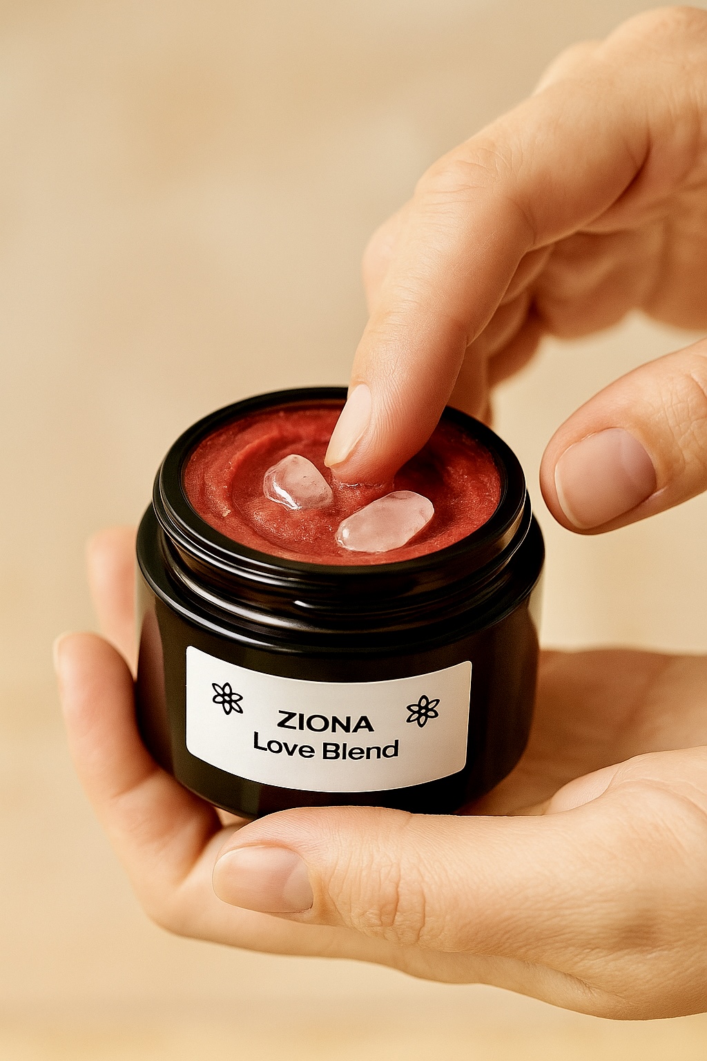 ZIONA LOVE BLEND – blend s ruženínom, ktorý otvára srdcovú čakru a podporuje v žene ženskú energiu, priťahuje lásku, mužskú energiu, nežnosť, dôveru a prijatie.